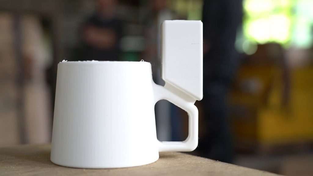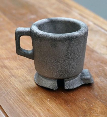 Als Testgeometrie wählte das Team von Niedersachsen ADDITIV gemeinsam mit der IAM-Metallgießerei eine Tasse aus. Diese vereint mehrere Herausforderungen: dünnwandige, großflächige Bereiche in Wandung und Boden sowie einen feingliedrigen Henkel.